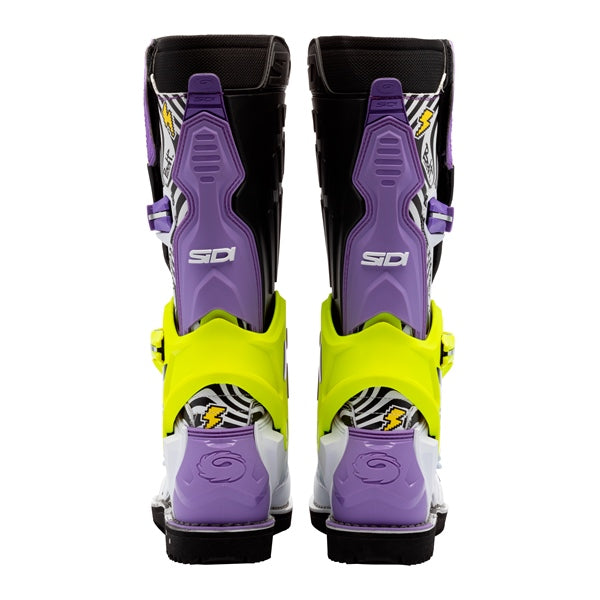Crossair HD is the first boot built for hard and super enduro, developed with Billy Bolt. It offers Sidi's premium protection at just 1700g (size 43). A fibreglass-reinforced exoskeleton ensures support and lightness, while the stitched rubber sole, inspired by trial boots, delivers unbeatable grip on pegs and terrain. Born from continuous evolution, Crossair HD blends Billy's riding style with SIDI's engineering expertise.